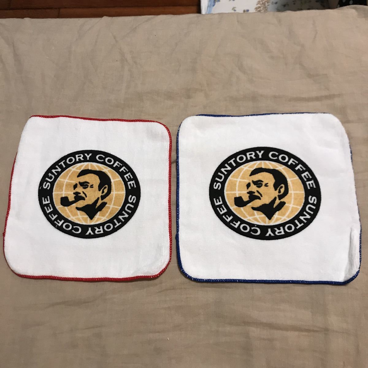 > 20×20cm サントリー ボス タオルハンカチ 2枚セット 未使用 ノベルティ 非売品 青 赤ライン ミニ