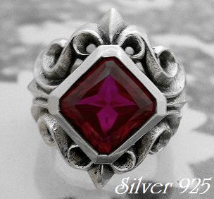 - シルバー925銀のレッドジルコニア[スクエアカット]付フレアフレーム リング/17号ラスト1個/S&A Silver