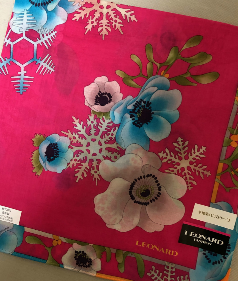 - 【レオナールLeonard】日本製100%綿ハンカチーフ大判花柄3新品格安即決