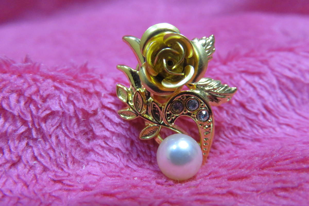 - E4029 ブローチ 薔薇 バラ ローズ パール調 ピンズ