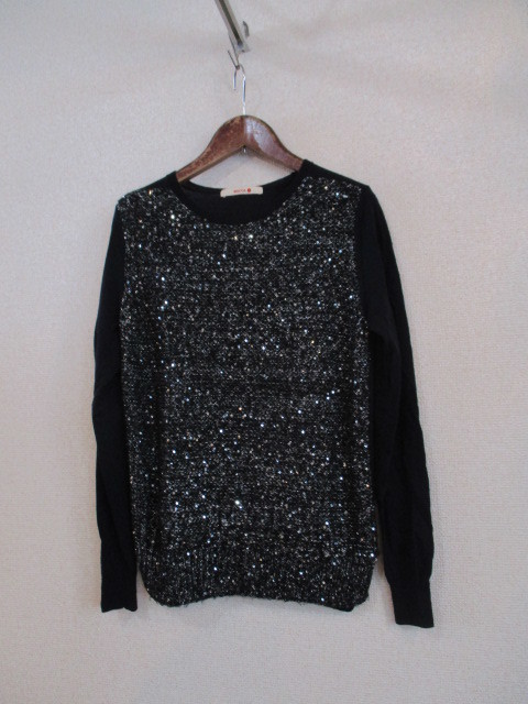 > BACCA(トゥモローランド)黒紺スパンコール付ニット(USED)11019)