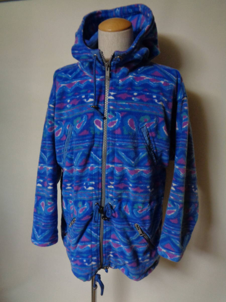 - 良品 a mode des montagnes フランス製 ビンテージ カラフル フリース パーカー フード ダック 柄物 80s 90s Made in France アヒル