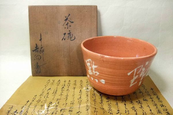 - 【睦】十三軒吉向 赤楽 楽焼 野点茶碗 茶道具 抹茶茶碗 骨董 共箱■