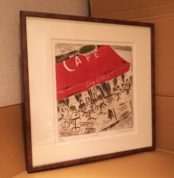 - 限定品41/50 モダンアート 山岡康子 エッチング 銅版画 『CAFE』 作家サインあり※未使用品/2000年ごろ入手/オシャレ版画/収納箱に傷みあり