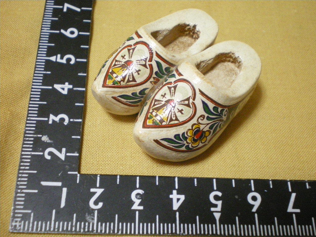 - 珍品フリマ・送料無料] 木製 手彩色 オランダ製? 木靴 木くつ 長さ4cm 2足ならんで巾 3.8cm