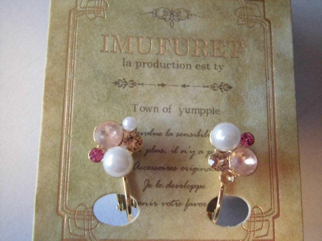- ★★★【23】パール&ピンク系ストーン イヤリング★パーツ欠損あり★★★