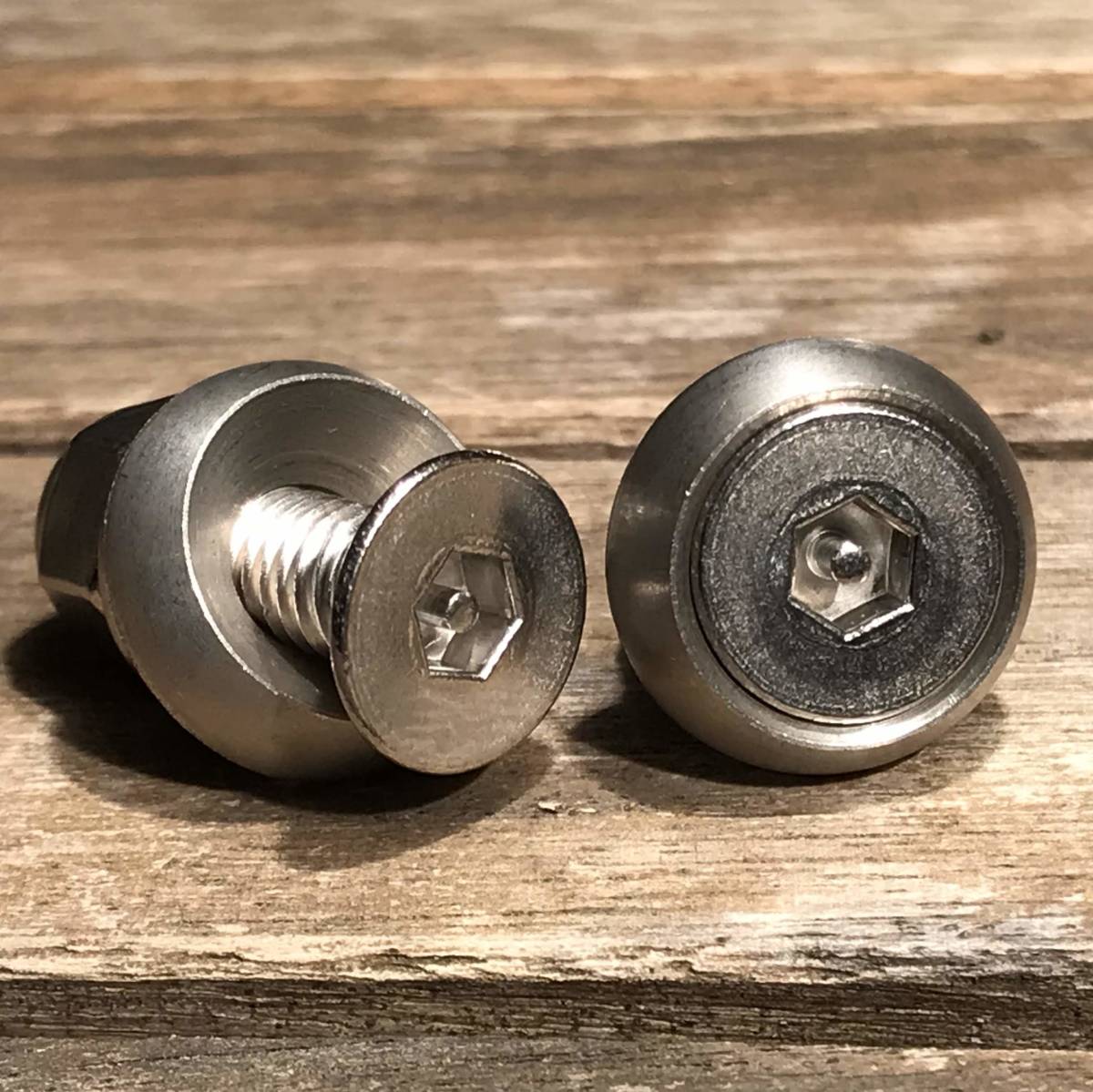 - ステンレス六角ピン付ローゼット 2セット ナンバーボルト盗難防止「ナ17 」国産車 軽自動車 普通車 旧車 ビンテージ カスタム ドレスアップ