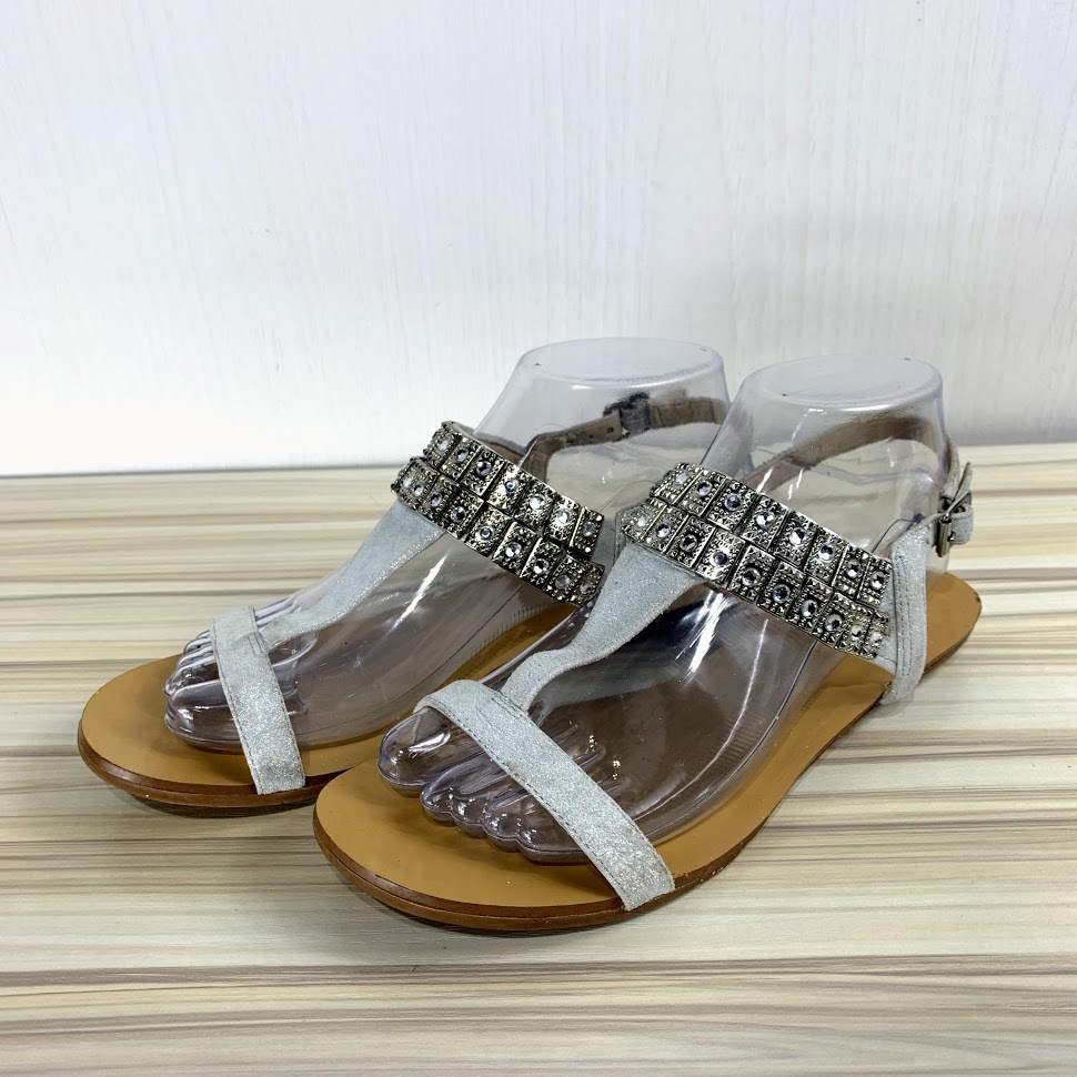 > NINE WEST ナインウエスト サンダル 6.5 Mサイズ シルバー 銀 スタッズ ビジュー 装飾