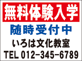 - ¥999名入付塾・教室看板「無料体験入学」Sサイズ45x60cm