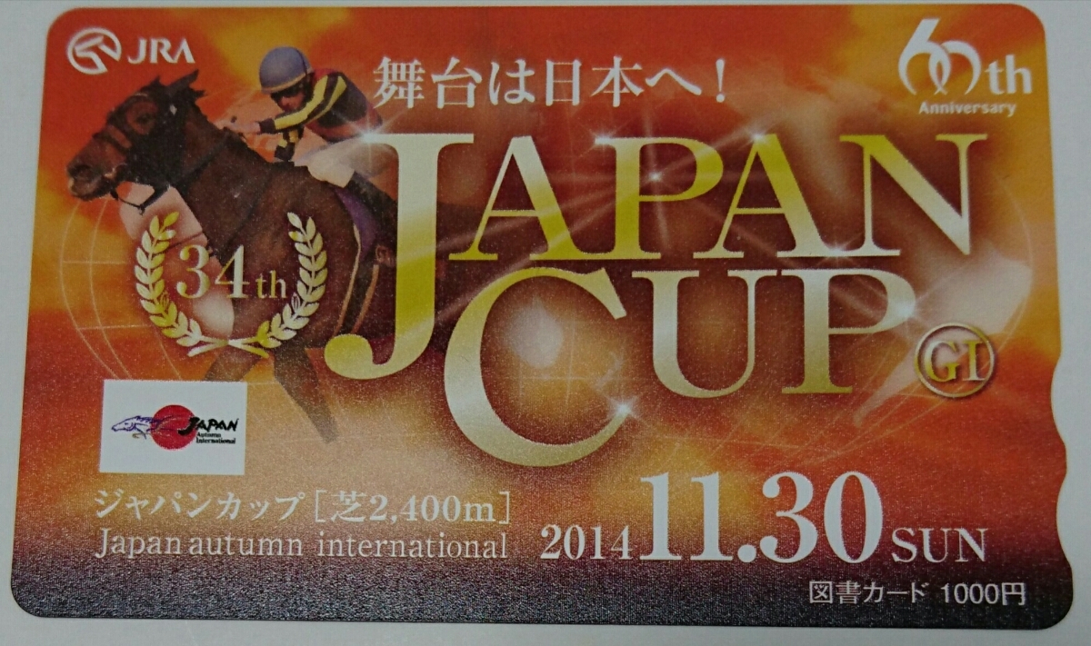 > JRA☆ジェンティルドンナ(ムーア騎手)☆2014年 第34回ジャパンカップ(勝ち馬:エピファネイア)☆図書カード1000円券☆非売品 未使用品☆競馬