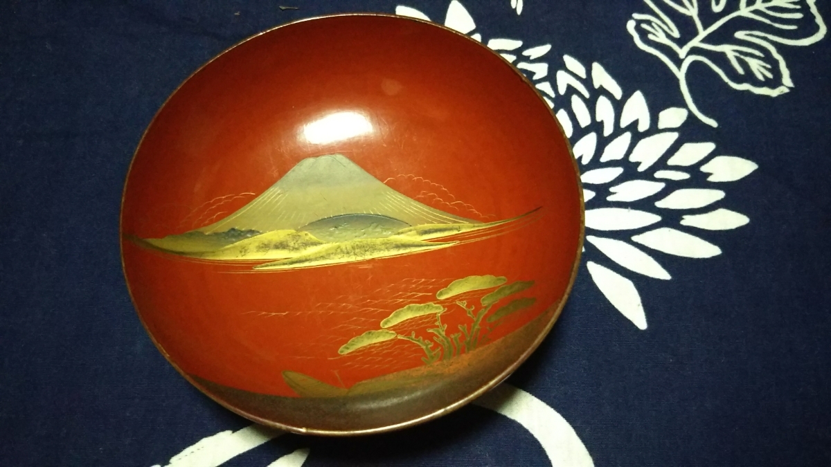 - 文政八年の酒盃四枚 富士山・鶴・桟橋図案の蒔絵