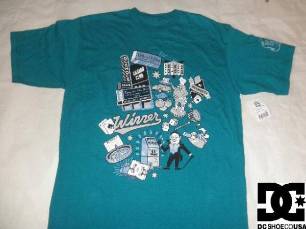 > USA購入 スケボー系アメカジブランド【DC SHOES】アメリカらしい絵柄プリントTシャツ US Sサイズ グリーン新品未使用