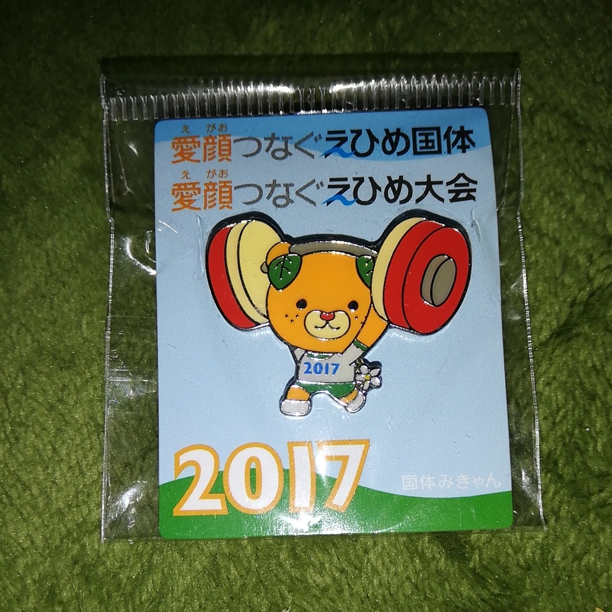 - ★新品★みきゃん★ピンバッジ★えひめ国体★愛媛ゆるキャラ★ウェイトリフティング