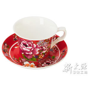 > 〈新太源〉「客家花布 コーヒーカップ (赤)」紅花珈琲杯/茶器/ 台湾鶯歌【送料無料】