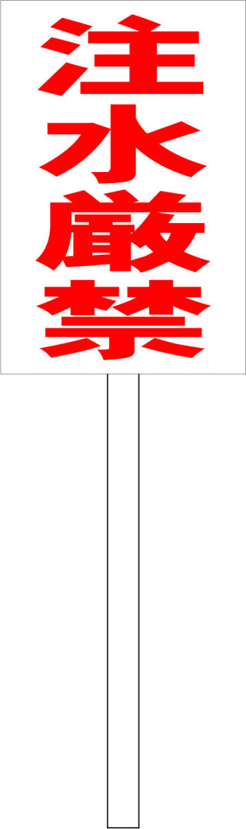 > シンプル立札看板 「注水厳禁(赤)」工場・現場 屋外可(面板 約H45.5cmxW30cm)全長1m