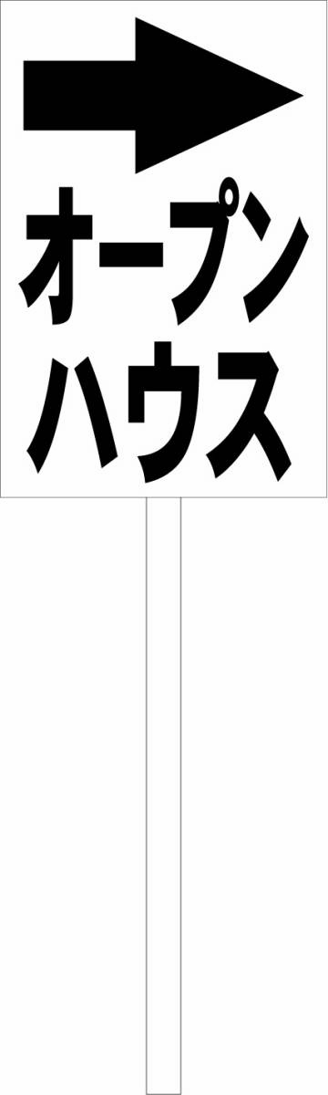 > シンプル立札看板 「オープンハウス右折(黒)」不動産 屋外可(面板 約H45.5cmxW30cm)全長1m