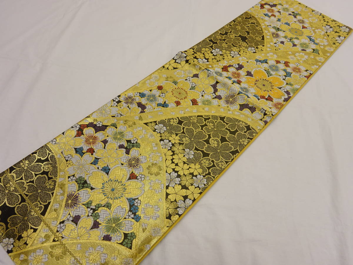 > 新品・未仕立て・振袖向き★京都西陣・植山茂八製・袋帯★金地に桜柄です