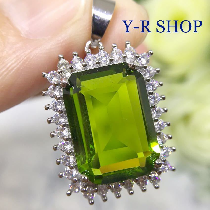 > 送料無料★大粒グリーンペリドットとキュービックジルコニアのゴージャスペンダントトップ★レディースネックレスシルバー刻印925新品宝石