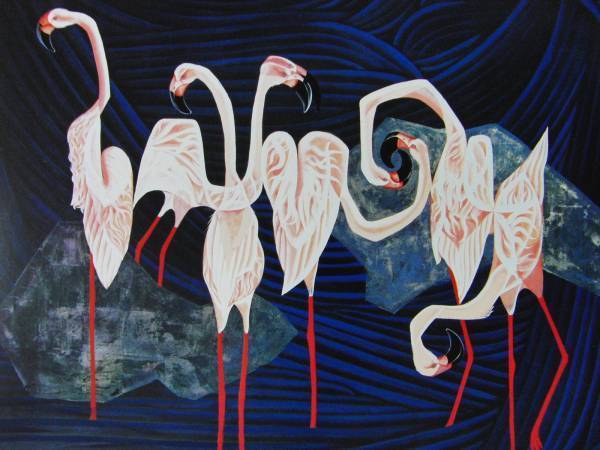 - 加山又造、紅鶴、希少、新品額・額装付、オーダーマット額装、送料無料、tat