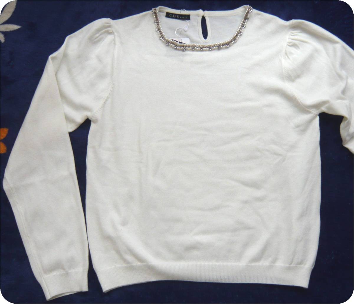 - ♪新品! ビジューネック トップス オフホワイト M/■送450