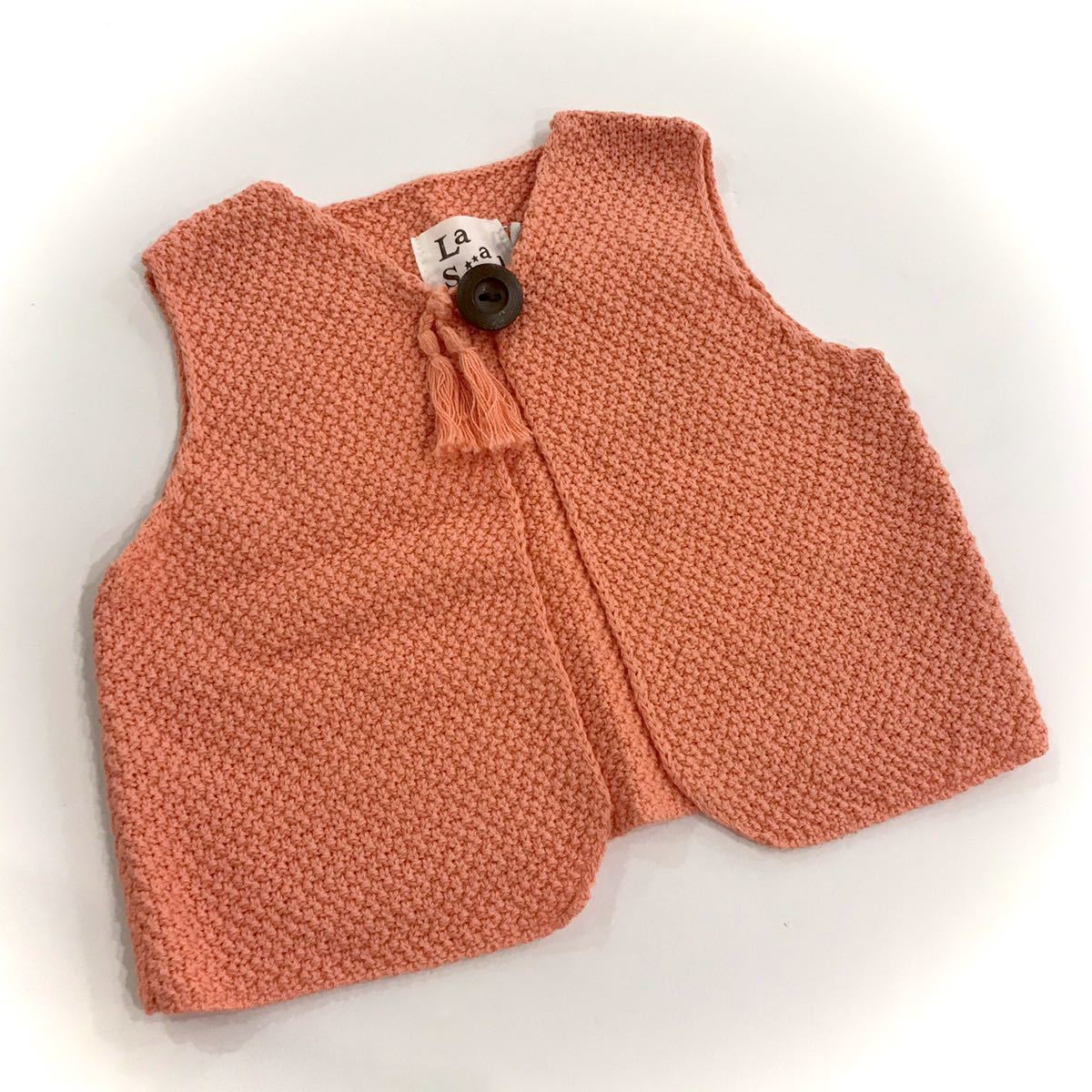 - 【新品未使用】La Stella ラステラ ベスト 薄手ニット ピンク タッセル ベビー 70cm ニットベスト コーラル ナチュラル レトロ