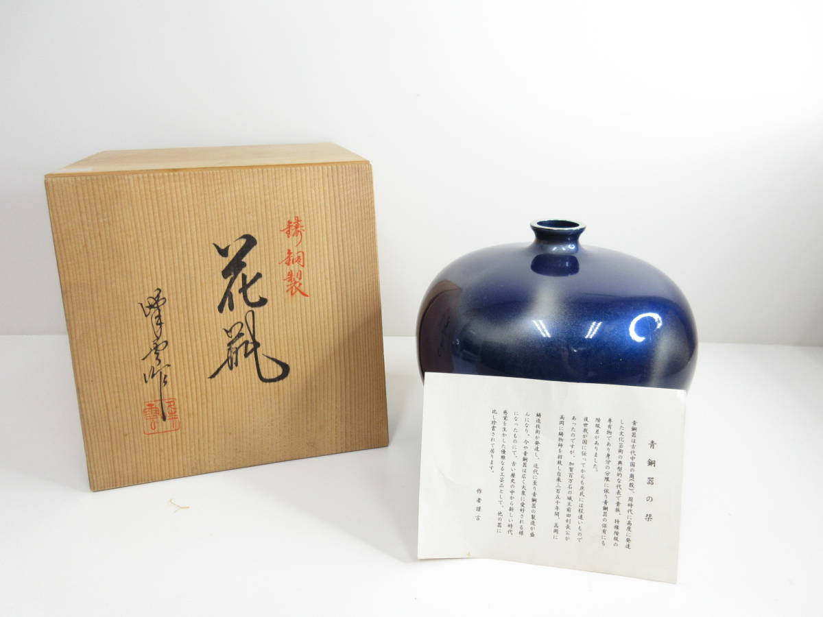 - 美品◆峰雲 青銅器 花瓶 一輪挿 青 銀 花器 銅製 インテリア 花 木箱有 管理2003 P-8