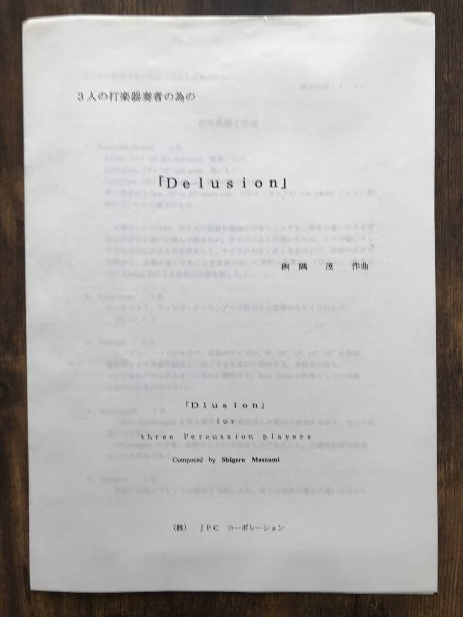 - 打楽器三重奏楽譜/桝隅 茂:Delusion 3人の打楽器奏者の為の/送料無料/パーカッション