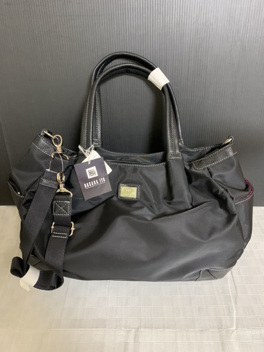 - 即決/未使用/タグ付/BASARATYO/バサラ/ショルダー付きハンドバッグ/カバン/ナイロン/合成皮革/ブラック/保管時のたたみよれシワスレ有
