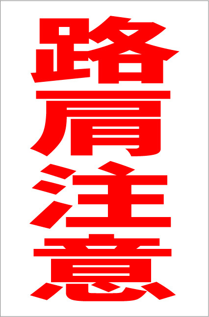 - シンプル縦型看板「路肩注意(赤)」【工場・現場用】屋外可