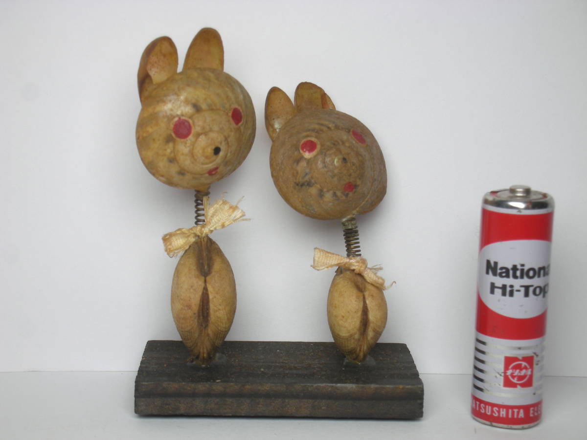 - 昭和レトロ 赤い目のウサギさん うさぎ? 動物 首振り こけし 貝殻細工こけし