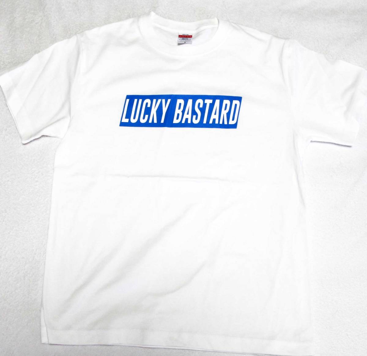- 運の良いやつ/ラッキーバスタードのオリジナルTシャツ/白xブルー