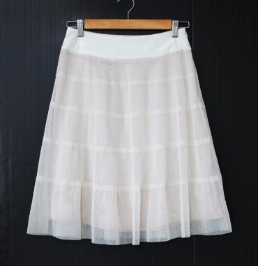 > 送料無料*美品*peyton place*ペイトンプレイス*オフホワイト*ドット柄*チュール*レース*ティアード風フレア*ひざ下*スカート*M