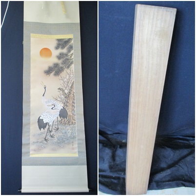 - ☆掛軸 鶴 シミ汚れあり 縦189cm 横54.5㎝ シミ汚れあり あゆ-46☆
