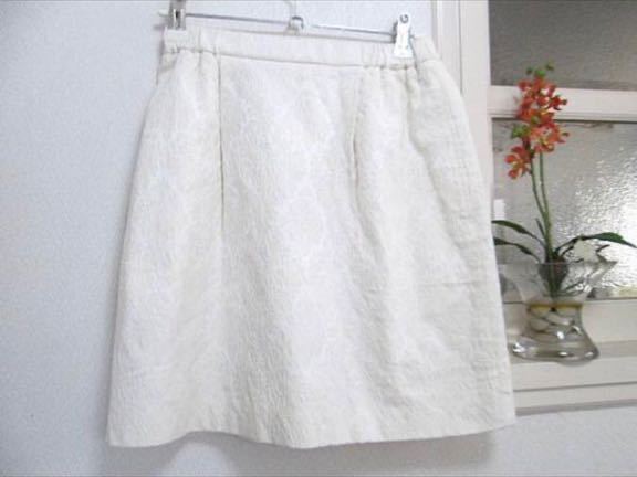 - 美品 23区 上質 ミニスカート 台形スカート 白 字模様入り ①