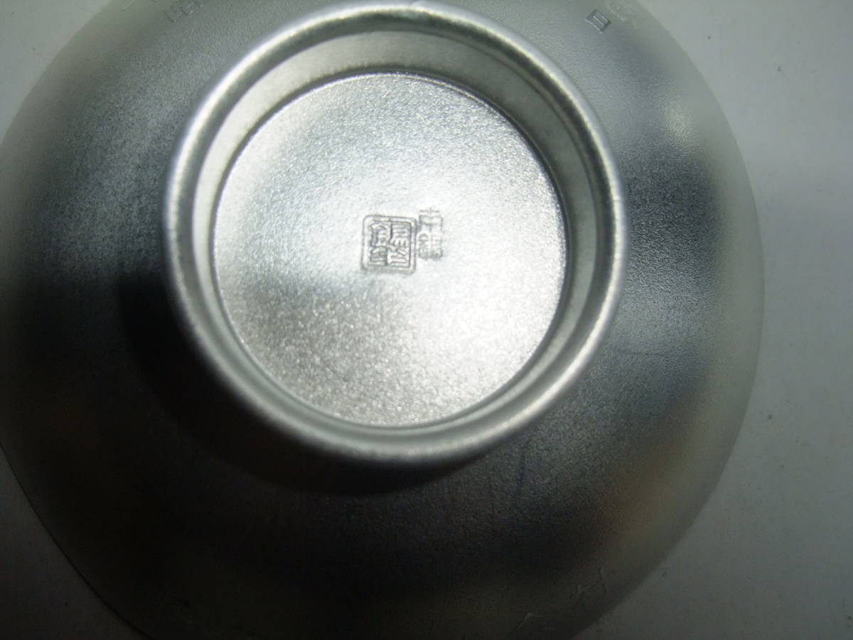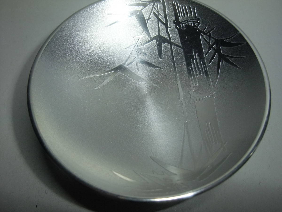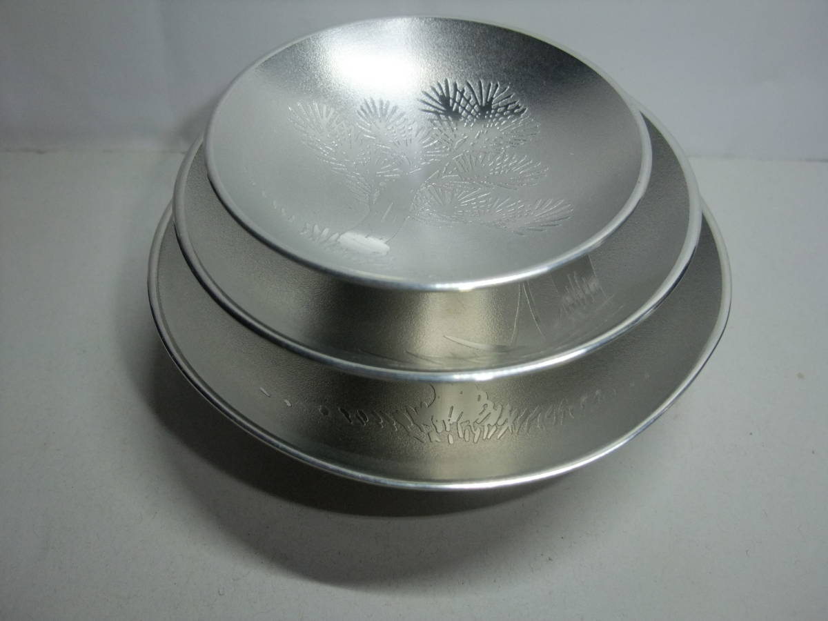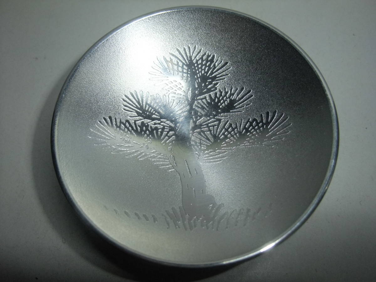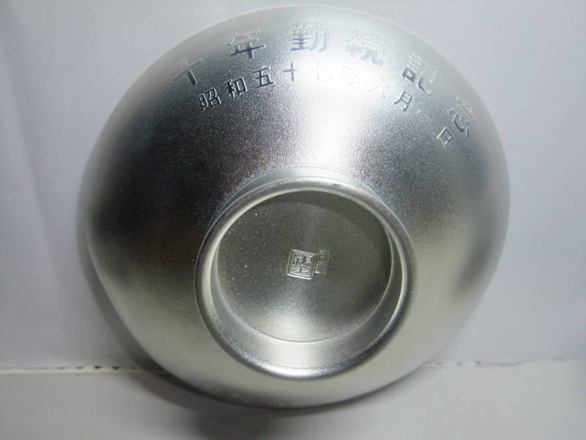 - 錫製 長崎造船株式会社 十年勤続記念 昭和五十七年六月一日と表示のある松竹梅柄 3段盃(桐箱入り)