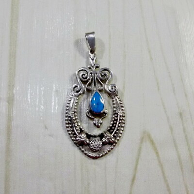 - 送料無料!ターコイズ(トルコ石)・アンティークシルバートップ1!