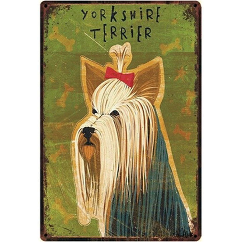 A2725 メタル サイン ブリキ 看板 金属製 プレート 昭和レトロ アートパネル 動物 ペット 犬 ヨークシャーテリア 2442拍卖
