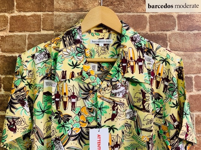 - ★表記M/新品!レーヨン100%.サーファー.WAIKIKI.サーフボード&人物柄.ハワイアンアロハシャツ.総柄.アメカジ.西海岸ヴィンテージスタイル