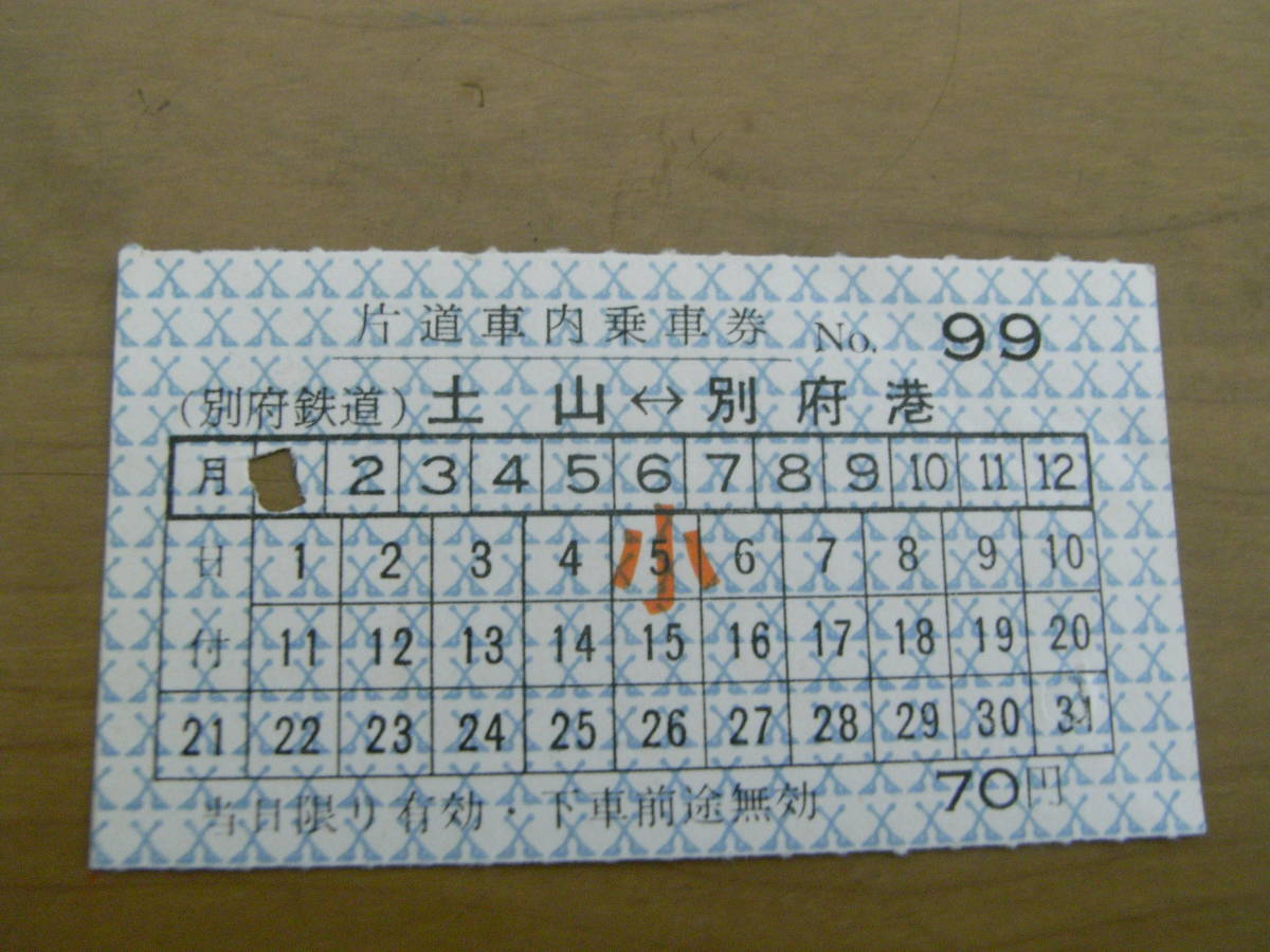 - 別府鉄道 片道車内乗車券 土山-別府港 小70円 99