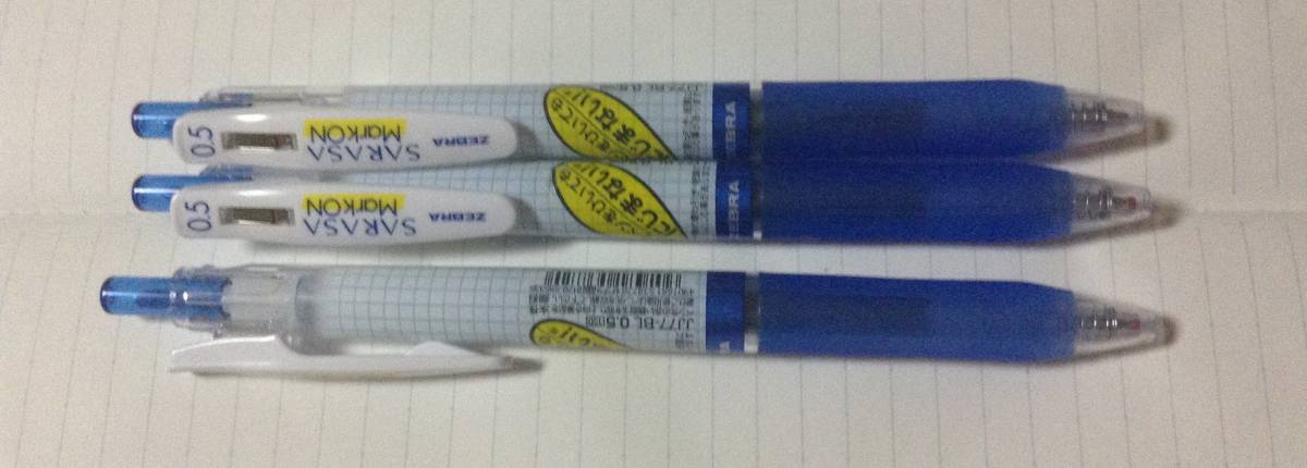 - ジェル ボールペン ♪ゼブラ サラサ♪ 3本♪ 0.5♪マークオン♪ MarK ON♪ 青インク♪蛍光ペンをひいてもにじまない