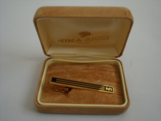 - $ 美品 $ 箱付き♪● ブランド タイピン ● NINA RICCI ◆ ニナリッチ ◆ ゴールドライン & ロゴ入り ◆ マッドゴールド系◆ 送料無料!