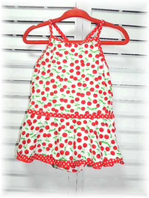 - 西松屋 バッククロス ワンピース水着 ベビー90cm ホワイト地×さくらんぼ柄