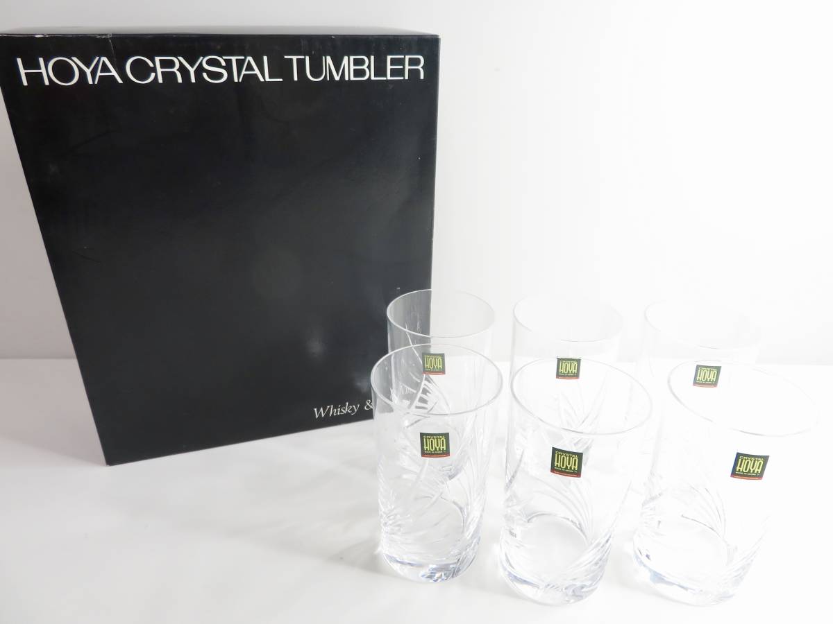 > 未使用品▲HOYA 保谷クリスタル タンブラー 240ml グラス コップ 6客セット シンプル 箱あり 管理2007 U-8