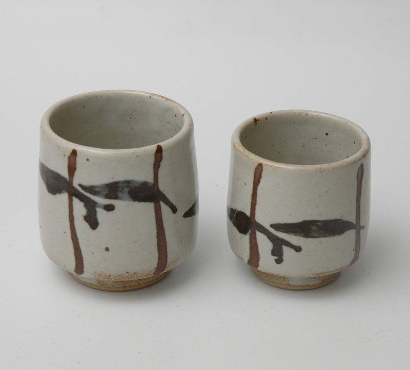 - 益子焼 並白釉 呉須鉄絵 夫婦湯呑 検)浜田庄司 民藝 ビームス