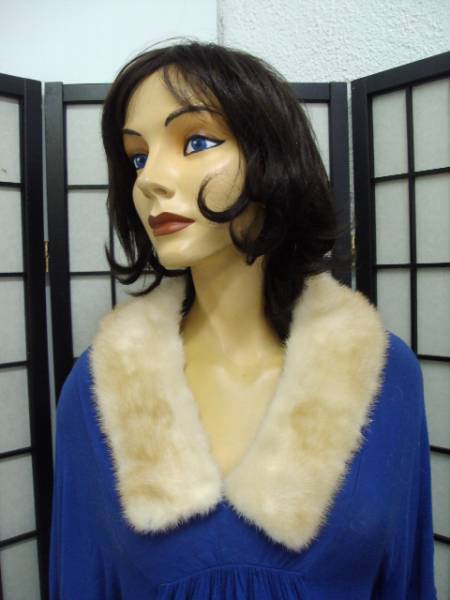 - パール・ミンク毛皮カラー 襟 約66x7.5cm 裏地新品