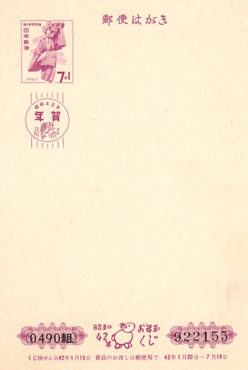 - 昭和42年1967「お年玉年賀はがき」7円+1円寄付・未使用【送料無料】「熊五郎の切手」00800083