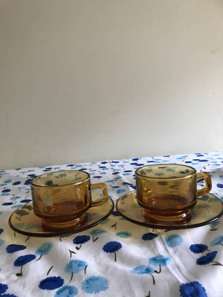 - 琥珀色 ガラス製 ティーカップ&ソーサー 2客 昭和レトロ