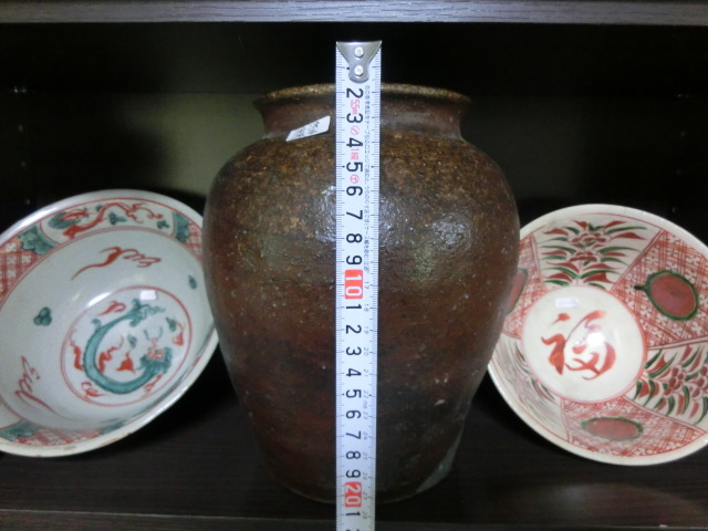 - 常滑焼の壺、と聞いています、多分サイズから茶壷と思います、実際用途も何処焼きか不明、備前、丹波、壺