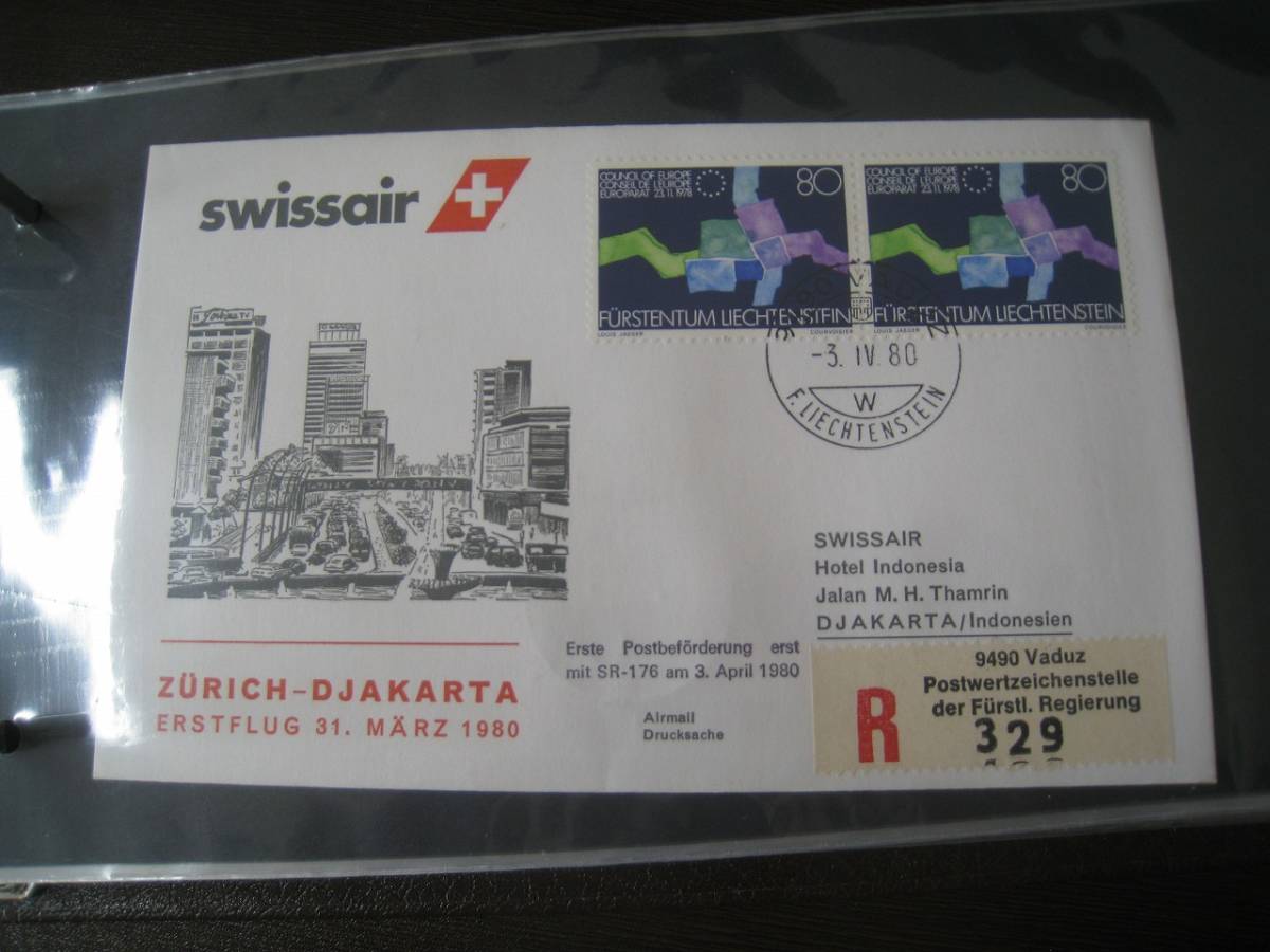- ★F423 FDC/FFC初日カバー1980 スイス航空 チューリッヒ - ジャカルタ -
