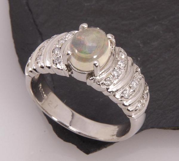 - 《質屋出品》Pt900★オパール+ダイアデザインリング★C-2312